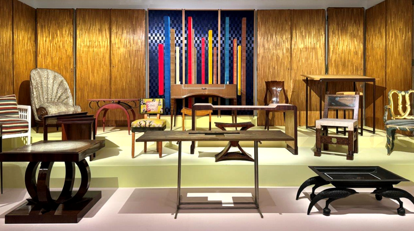 Trois panneaux en cèdre massif Marqueterie de paille teintée Pièce unique Signé 2024